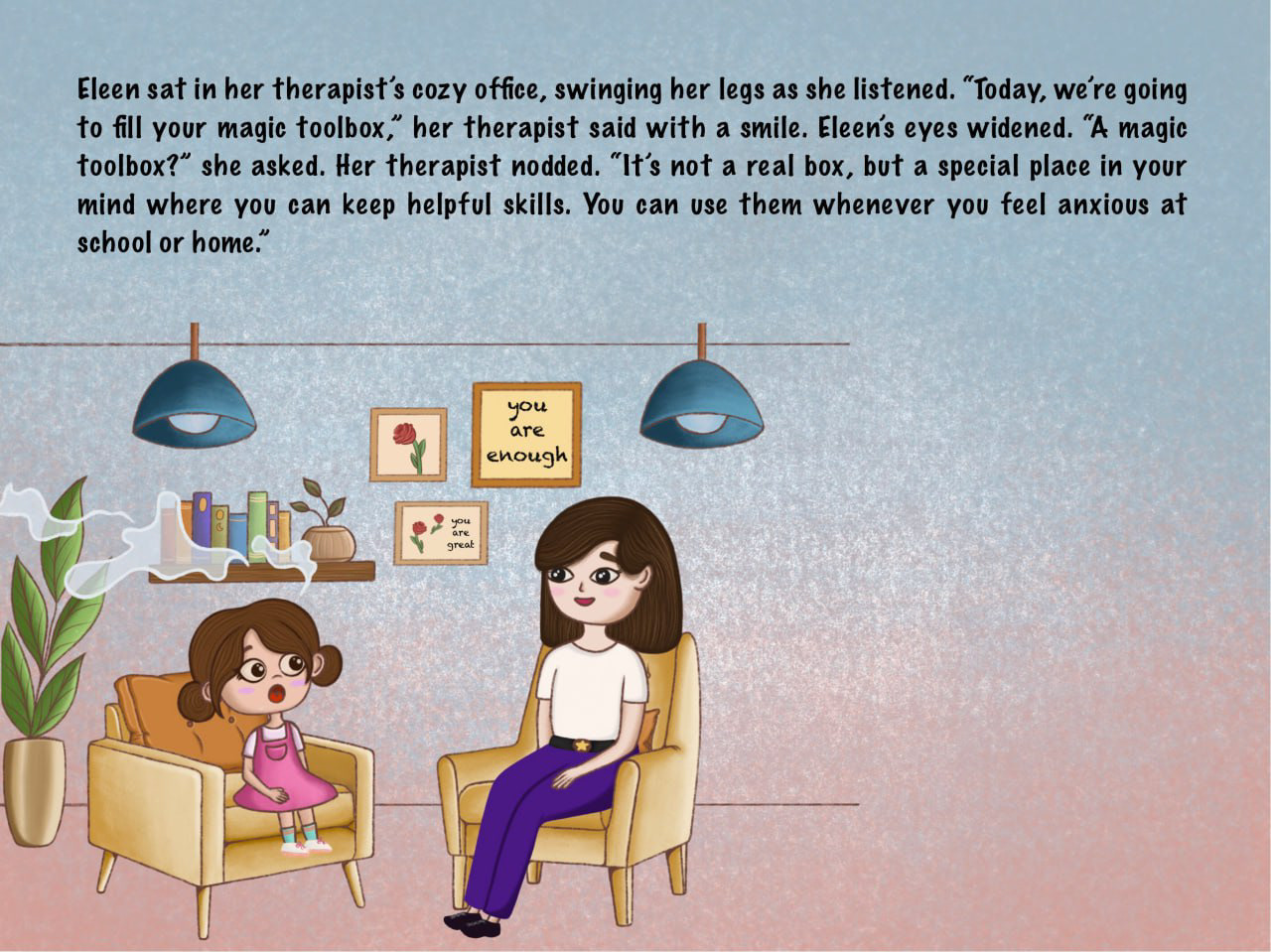 The story follows Ellen as she struggles with anxiety and fear. With the help of a counselor and a magical toolbox filled with calming techniques, Ellen learns to manage her emotions and become braver in the face of fear.